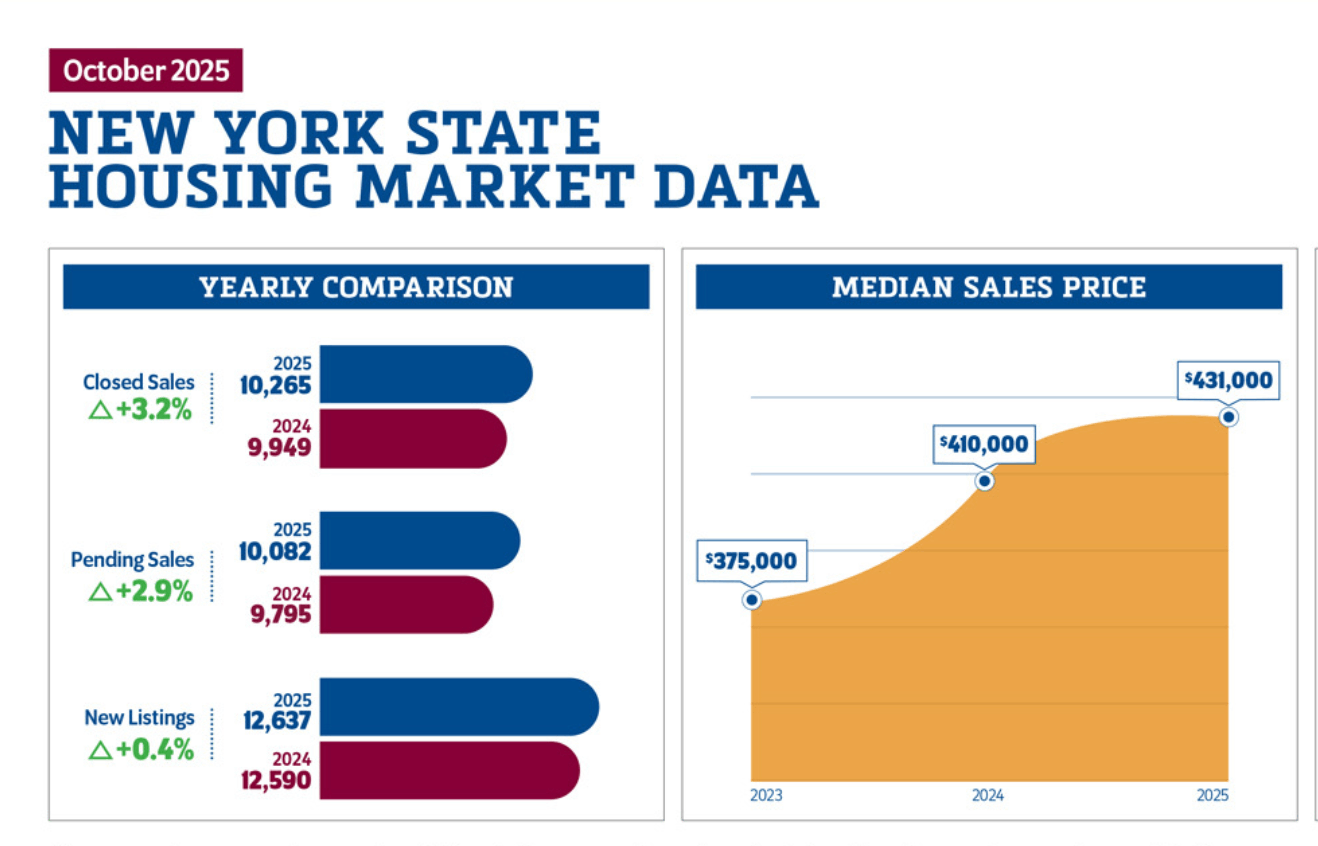 Key housing indicators across New York State maintained positive momentum in October, as new listings, pending sales, and closed sales all increased while inventory expanded for the eighth consecutive month, according to the housing report released today by the New York State Association of REALTORS®.
